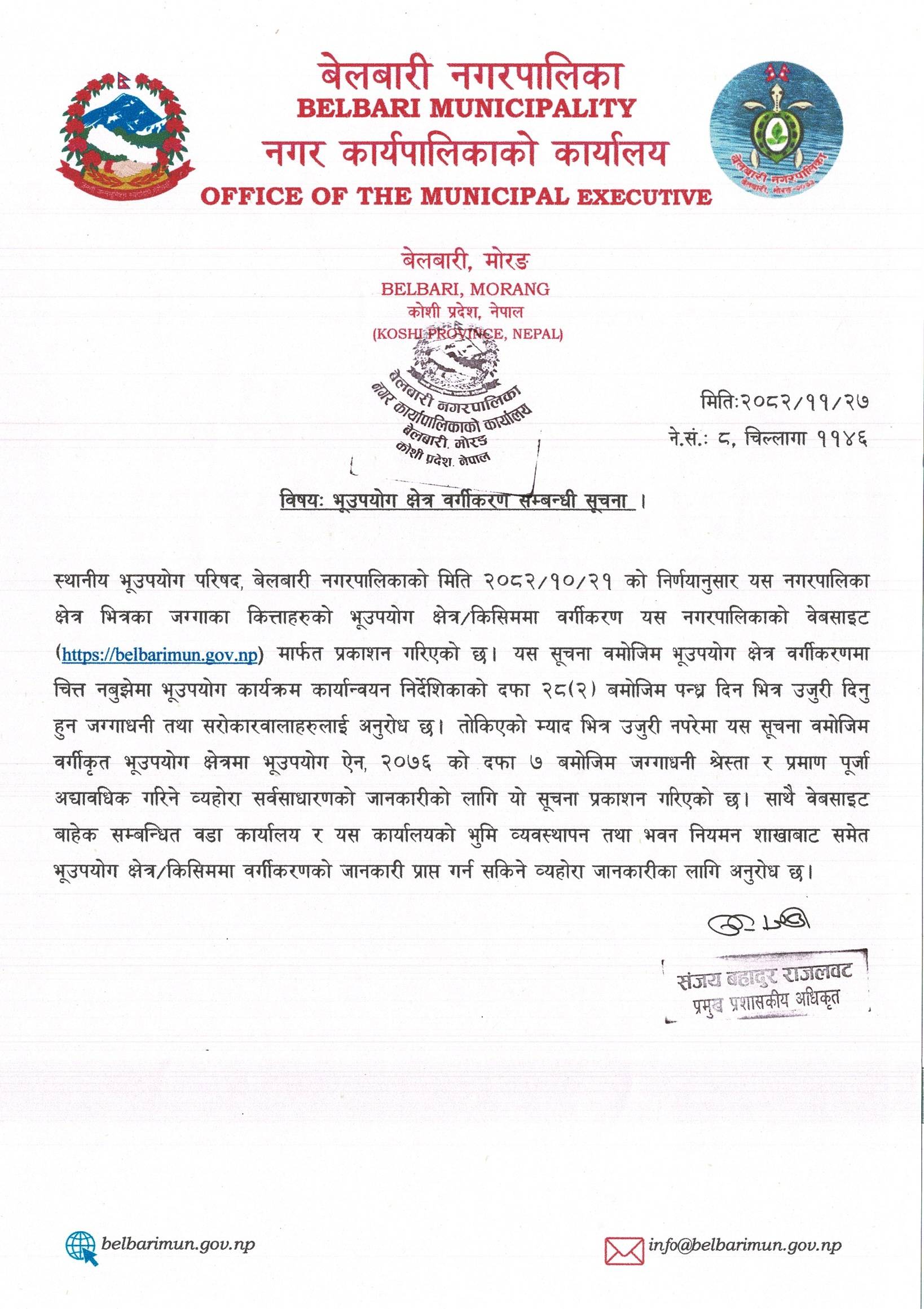 भूउपयोग क्षेत्र वर्गीकरण सम्बन्धी सूचना ।
