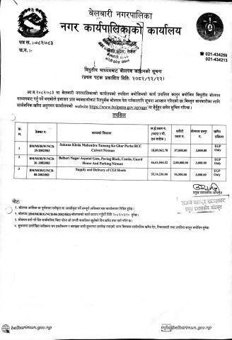 बोलपत्र स्वीकृत गर्ने आषयको सूचना । मिति २०८२।१२।०९