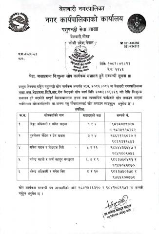 श्री अध्यक्षज्यू वडा कार्यालय सबै बेलबारी नगरपालिका जानकारी सम्बन्धमा ।