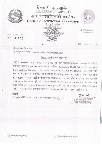 श्री अध्यक्षज्यू वडा कार्यालय सबै बेलबारी नगरपालिका जानकारी सम्बन्धमा ।