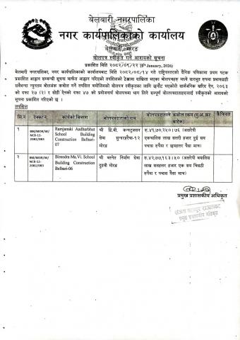 बोलपत्र स्वीकृत गर्ने आषयको सूचना । मिति २०८२।१०।११