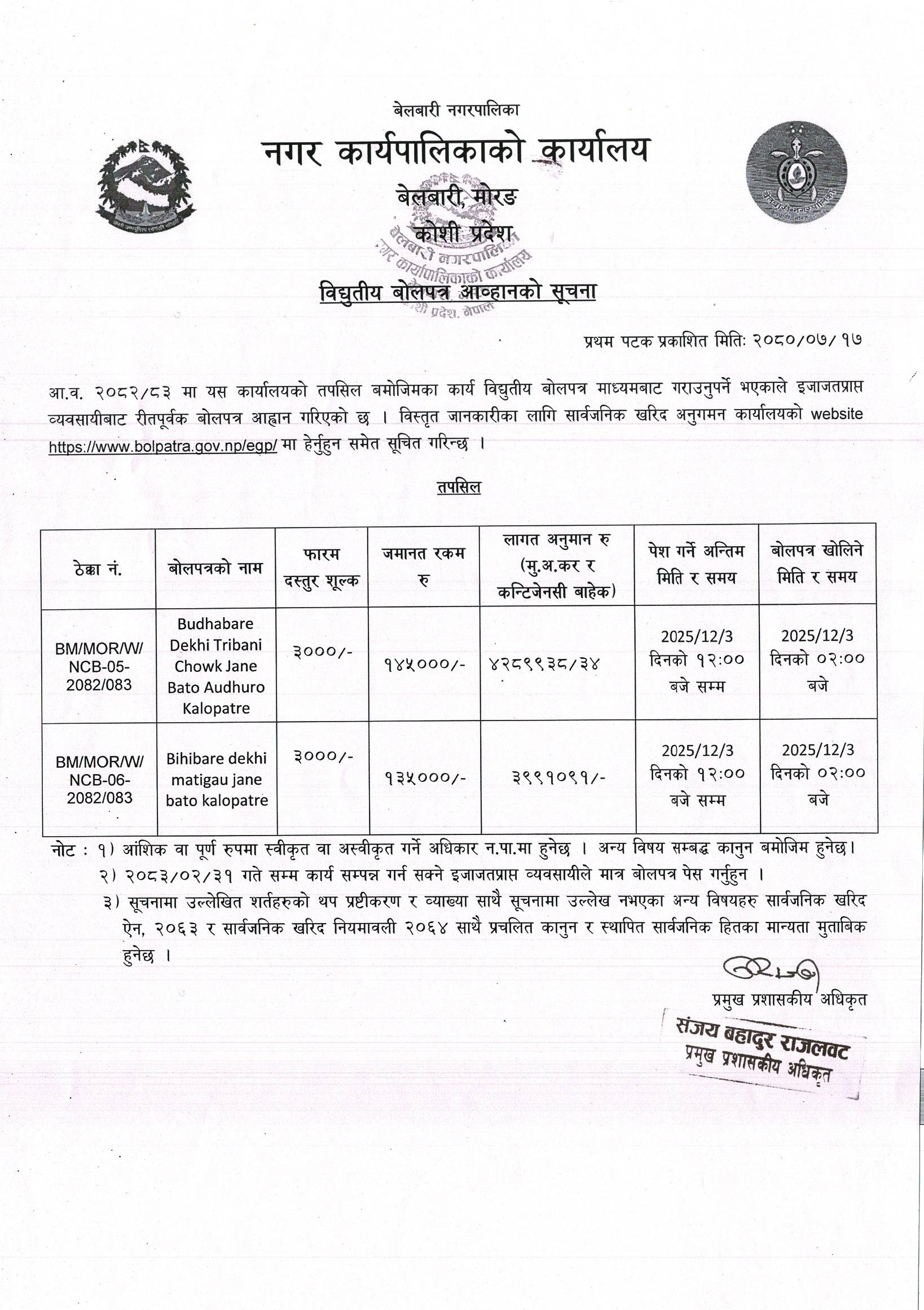 » बोलपत्र आव्हानको सूचना । मिति २०८२।०७।१७