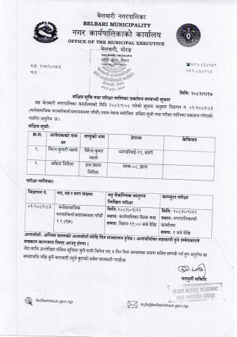 श्री अध्यक्षज्यू वडा कार्यालय सबै बेलबारी नगरपालिका जानकारी सम्बन्धमा ।