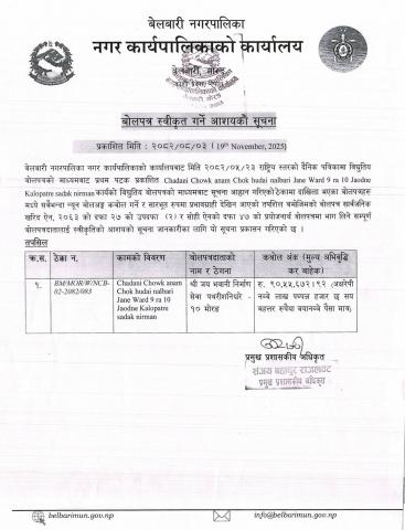 » Chadani Chowk Anam Chowk Hudai Nabari Jane Ward 9 ra 10 Jodne Kalopatra Sadak Nirman को आषयको सूचना । मिति २०८२।०८।०३