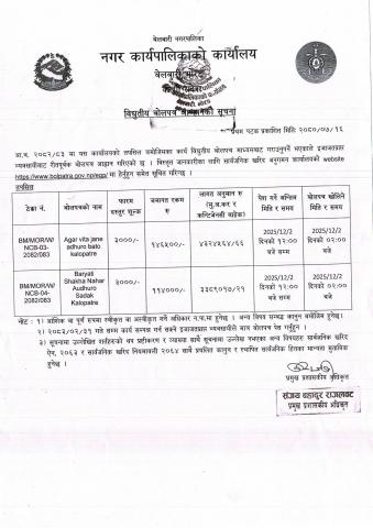 » बोलपत्र आव्हानको सूचना । मिति २०८२।०७।१६
