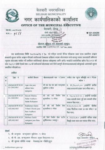 श्री अध्यक्षज्यू वडा कार्यालय सबै बेलबारी नगरपालिका जानकारी सम्बन्धमा ।