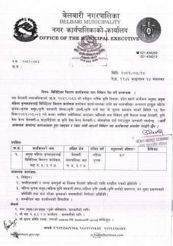 मिनिटिलर वितरण कार्यक्रम माग निवेदन पेश गर्ने सम्बन्धमा ।
