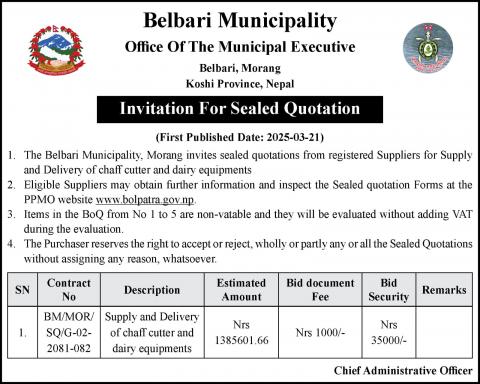 विद्युतिय माध्यमबाट बोलपत्र आव्हानको सूचना । मिति २०८२।०८।१४